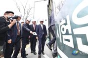 경기디지털뉴스 마성숙 기자 | 조원휘 대전시의회 의장과 송인석 산업건설위원장이 1일 대전 유성구 도안동 호수공원 일원에서 국내 최초로 실시된 3칸 굴절차량 도로 시험 운행 현장을 점검했다. 한편, 대전시가 전국 최초 도입하는 3칸 굴절차량은 향후 6월까지 도안동로 중앙버스전용차로 일부 구간(갑천4블럭~용반네거리)에서 시험 운행 후 전용차로 및 차고지 등 기반 시설 구축 일정에 맞춰 올해 10월까지 단계적으로 개통할 계획이다.