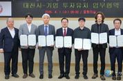 경기디지털뉴스 마성숙 기자 | 대전시는 1일 시청 중회의실에서 국내 유망기업 5개 사와 총 550억 원 규모의 신규 투자와 대전 이전에 대한 업무협약(MOU)을 체결했다. 이를 통해 250여 개의 일자리가 창출되는 등 지역경제 활성화에 기여할 것으로 전망된다. 이날 협약식에는 이장우 대전시장과 정태희 대전상공회의소 회장을 비롯해 정태영 ㈜동명씨앤에스 최고기술책임자(CTO), 황보제민 ㈜라이온로보틱스 대표, 이강헌 알엑스㈜ 대표, 선강훈 에이치앤파워㈜ 경영관리본부장, 류석진 유저스㈜ 대표가 참석했다. 협약에는 기업의 대전 이전 및 신설 투자와 함께 원활한 투자 진행을 위한 대전시의 행정적ㆍ재정적 지원과 신규고용 창출 및 지역경제 발전을 위한 공동 협력 방안이 담겼다. 서구 평촌 산업단지에는 첨단 기술과 나노코팅 기술을 결합한 경기장 관람석 의자 제조 기업 ㈜동명씨앤에스가 투자해 제품의 양산 능력을 확대할 예정이다. 유성구 탑립ㆍ전민지구에는 국방ㆍ재난ㆍ산업안전 분야 사족보행 로봇 제조 기업 ㈜라이온로보틱스와 인공지능(AI) 기반 소형모듈원자로(SMR) 디지털화 기술을 개발하는 알엑스㈜(대표