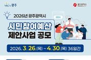 경기디지털뉴스 마성숙 기자 | 광주광역시는 2027년도 예산 과정에 시민참여를 보장하기 위한 ‘시민참여예산 제안사업’을 4월30일까지 접수한다. 시민참여예산은 재정 운영의 투명성을 높이고, 재정민주주의를 강화해 시민 삶의 질을 향상시키기 위한 제도다. 광주시에 거주하는 시민이나 단체는 누구나 사업을 제안할 수 있다. 제안 대상 사업은 단년도에 완료되는 광주시 소관 사무로 ▲시정참여형 ▲청년참여형 등 두 가지를 접수한다. 시정참여형은 시민 생활과 밀접하고 시민 수혜도가 높은 5억원 이하 사업이다. 청년참여형은 일자리, 창업지원, 맞춤형 교육, 창작활동 등 청년 정책 사업으로 예산 제한 없이 제안할 수 있다. 다만, 민원성 사업, 특정단체 중복성 사업, 일회성 공연 축제, 공익에 저해되는 사업 등은 심사에서 제외한다. 참여는 광주시 누리집 시민참여예산시스템 주민e참여시스템 혹은 시민광장 광주온으로 온라인 신청할 수 있다. 전자우편과 우편(광주 서구 내방로111, 예산담당관실) 신청도 가능하다. 광주시는 접수된 제안사업에 대해 소관부서 검토, 시민투표,