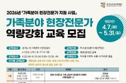 경기디지털뉴스 마성숙 기자 | 경기도여성가족재단은 4~6월 총 5회에 걸쳐 경기도 내 가족분야 전문상담사 250명을 대상으로 가족분야 현장전문가 역량강화 교육을 실시한다. 이번 교육은 가족분야 상담을 필요로 하는 경기도민에게 보다 전문적이고 다양한 영역의 상담서비스를 제공할 수 있도록, 현장에서 활동하는 상담사의 실천 역량을 강화하기 위해 마련됐다. 최근 가족분야 상담 현장에서 중요성이 커지고 있는 우울·자살 위험, 중독, 은둔·고립, 장애·입양 등 다양한 유형별 특성과 주요 이슈에 대한 이해 및 상담사례 등으로 현장에서 곧바로 적용할 수 있도록 프로그램을 구성했다. 모집대상은 경기도 내 가족분야 전문상담사이며, 교육은 차수별 50명 내외로 총 5차에 걸쳐 운영된다. 신청기간은 4월 7일부터 5월 31일까지이며, 재단 누리집을 통해 차수별로 선착순 모집한다. 김혜순 재단 대표이사는 “이번 역량강화교육은 도내에서 활동하는 가족분야 전문상담사들의 상담 현장 대응력과 전문성 제고를 위해 기획한 것”이라면서 “가족분야 현장전문가들과 함께 할 수 있는 사업을 마련하겠다”고 말했다.