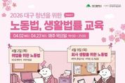 경기디지털뉴스 마성숙 기자 | 대구광역시는 지역 청년들의 노동권 보호와 법적 권리 인식 제고를 위해 ‘대구 청년을 위한 노동법·생활법률 교육’을 오는 4월부터 본격 추진한다. 이번 교육은 대구 미취업 청년, 사회 초년생, 청년 창업가를 대상으로 하며 2026년 4월부터 11월까지 총 3개 시즌으로 나눠 운영된다. 시즌별 4회씩, 총 12회의 전문가 교육 프로그램이 진행될 예정이며, 시즌1 교육 프로그램은 4월 2일부터 4월 23일까지 매주 목요일 오후 7시부터 9시까지 진행된다. 교육 내용은 청년들의 취업 전·후, 퇴사 시, 창업 등 진로 선택에 맞춰 구성돼 근로계약서 작성, 최저임금, 연차 사용 등 노동법과 임대차계약, 부동산 권리, 저작권 등 생활법률 정보를 제공하는 데 중점을 둔다. 특히 강의와 함께 질의응답 및 상담도 병행해 참여자들이 실제로 겪는 법률 문제에 대해 실질적인 도움을 받을 수 있도록 구성했다. 아울러 청년들의 관심이 높은 주요 법률 이슈를 보다 쉽게 이해할 수 있도록 명사 초청 방식의 청년 법률특강도 2회 진행할 예정이다. 교육은 대구시청년센터 공감그래에서 진행되며