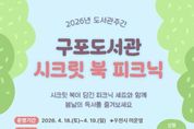 경기디지털뉴스 마성숙 기자 | 부산광역시립구포도서관은 도서관 주간을 맞아 오는 18일과 19일 이틀간 도서관 앞 온빛광장에서 도서관 이용자를 대상으로 이색 대출 서비스 ‘시크릿 북 피크닉’을 운영한다. 이번 행사는 이용자들에게 색다른 독서 경험을 제공하고 도서관 이용에 대한 흥미를 높여 책 읽는 문화를 확산하기 위해 마련했다. 참여자는 도서관 2층 문적원2에서 ‘시크릿 북 피크닉 세트’를 대여한 후 온빛광장에서 자유롭게 독서를 즐길 수 있다. 세트는 피크닉 바구니, 돗자리, 접이식 테이블 및 의자, 필사 체험용 키트와 시크릿 북 2권으로 구성되어 별도의 준비 없이도 야외 독서를 편리하게 체험할 수 있도록 했다. 특히 세트에 포함된 도서는 제목과 저자 대신 10가지 키워드만 제시하여, 이용자가 자신의 취향에 맞는 키워드를 선택해 예상치 못한 책을 만나는 즐거움과 새로운 독서 경험을 제공한다. 행사 운영 시간은 오전 10시부터 오후 4시까지이며, 하루 10팀을 대상으로 운영한다. 자세한 사항은 구포도서관 문적원2로 문의하면 된다. 신미향 구포도서관장은 도서관 앞