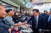 경기디지털뉴스 마성숙 기자 | 이재명 대통령은 25일 오후 한국항공우주산업(KAI)에서 열린 KF-21 양산 1호기 출고식에 참석한 뒤 경남 진주시에 위치한 진주중앙시장을 깜짝 방문해 민심을 청취했다. 진주중앙시장은 1884년 개장한 유서 깊은 전통시장으로, 진주 지역의 대표 상업 거점으로 자리하고 있다. 이재명 대통령은 후보 시절이던 지난해 5월에도 이곳을 방문한 바 있다. 상인들과 주민들은 예고 없이 깜짝 등장한 이재명 대통령을 환호와 박수로 맞이했다. 현장에서는 “이재명 대통령 최고!”, “사랑합니다”, "감사합니다", “멋있어요”, “고생 많으십니다” 등 다양한 응원의 목소리가 이어졌다. 이재명 대통령은 시민들과 일일이 눈을 맞추며 인사했고, 셀카 촬영에 응했다. 특히 아이들을 지나치지 않고 몇 살인지 묻는 등 세심하게 소통하며 함께 사진을 찍었다. 이재명 대통령은 시장 곳곳을 둘러보고, 상인들에게 장사가 잘되는지 묻는 등 현장의 목소리를 청취했다. 이재명 대통령은 상추와 애호박 등을 현금과 온누리상품권으로 구입했고, 귤과 꼬치전, 호떡, 엿, 딸기 등을 즉석에서 맛본 뒤 구입했