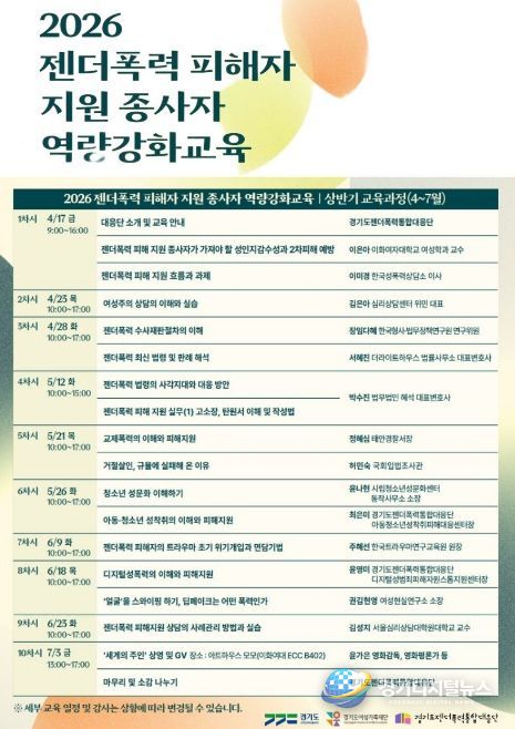 경기디지털뉴스 마성숙 기자 | 경기도와 경기도젠더폭력통합대응단이 17일 도내 젠더폭력 피해 지원 현장 종사자들의 전문성 향상을 위한 ‘2026 역량강화 교육’ 상반기 과정을 시작하며 현장 대응력 강화에 나섰다.