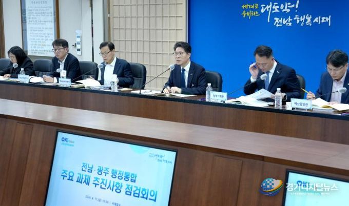 경기디지털뉴스 마성숙 기자 | 전라남도는 17일 도청 서재필실에서 전남·광주 행정통합 주요 과제 추진상항 점검회의를 열어 오는 7월 1일 출범하는 전남광주통합특별시의 성공적 탄생에 총력을 기울이기로 했다.