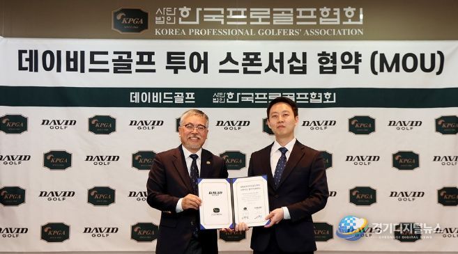 경기디지털뉴스 마성숙 기자 | 4월 21일(화) 오전 11시, 경기도 성남시에 있는 KPGA 빌딩(10층)에서 KPGA 챌린지투어의 새로운 타이틀 스폰서 조인식이 열렸다. 이날 조인식에는 데이비드골프 구건우 대표와 ㈜한국프로골프투어(KPGT) 김원섭 대표이사가 참석했다.